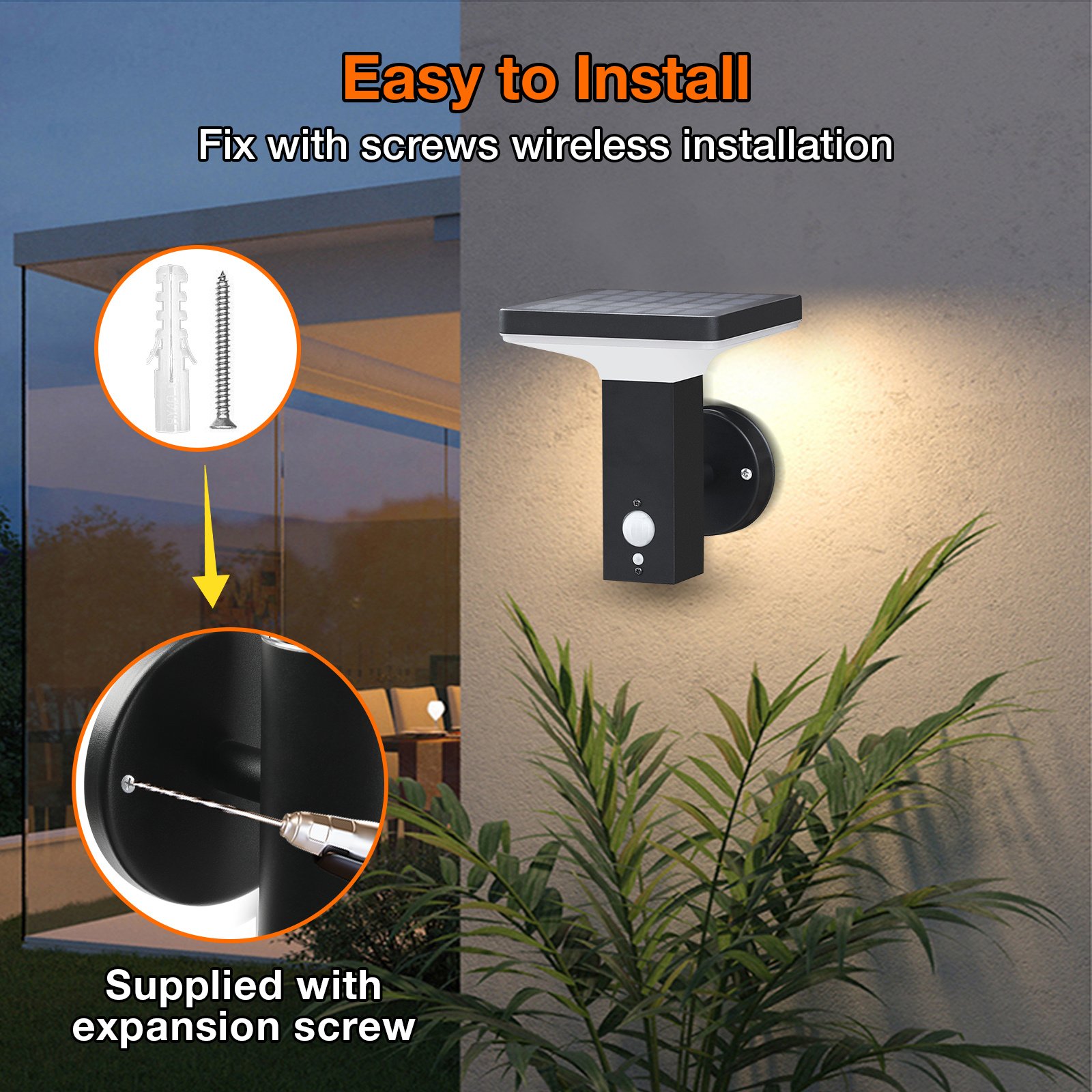 1.Wireless and quick installation:outdoor solar lights no wiring required. Pl install solar porch lights outdoor with direct sunlight. Such as porch, patio, garden, garage, entrance, yard, balcony, etc. The solar outdoor wall lights come with accessories and manuals.